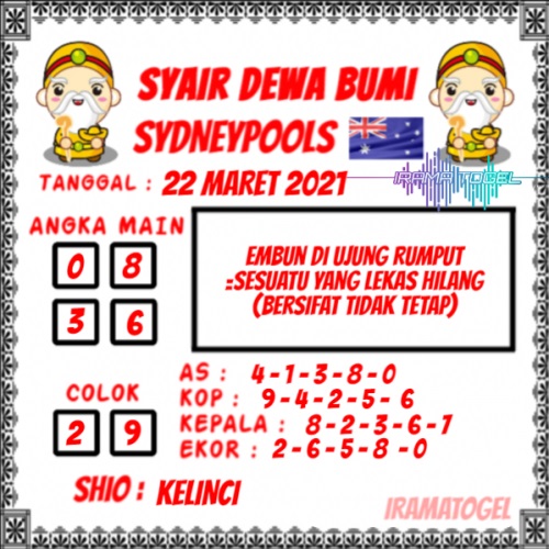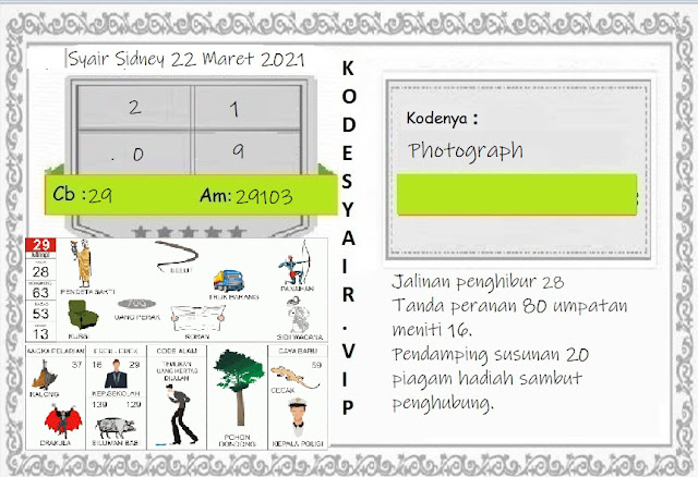 Kode Syair Sdy Senin 22 Maret 2021, meliputi forum syair sydney , paito warna sdy serta prediksi togel sidney dan di lengkapi juga dengan data pengeluaran sdy 2020 .