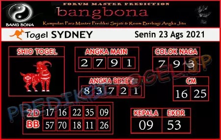 Kode Syair Sdy Senin 23 Agustus 2021 , meliputi forum syair sydney , Bocoran sdy serta prediksi togel sidney dan di lengkapi juga dengan data pengeluaran sdy 2021 .