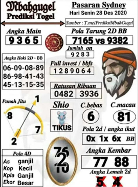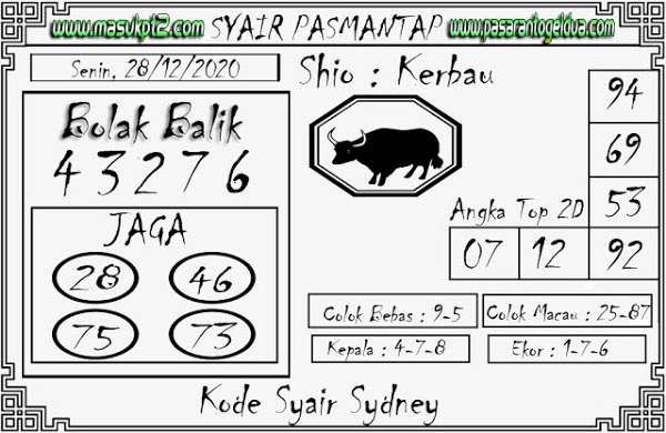 Syair Sdy Senin 28 desember 2020