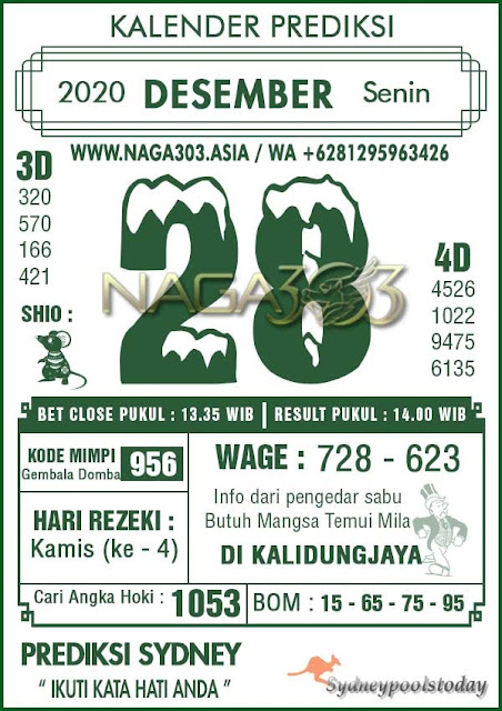 Kode Syair Sdy Senin 28 desember 2020 meliputi forum syair sydney , paito warna sdy serta prediksi togel sidney dan di lengkapi juga dengan data pengeluaran sdy 2020 .