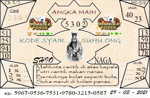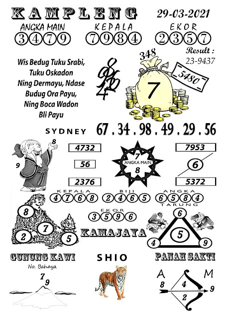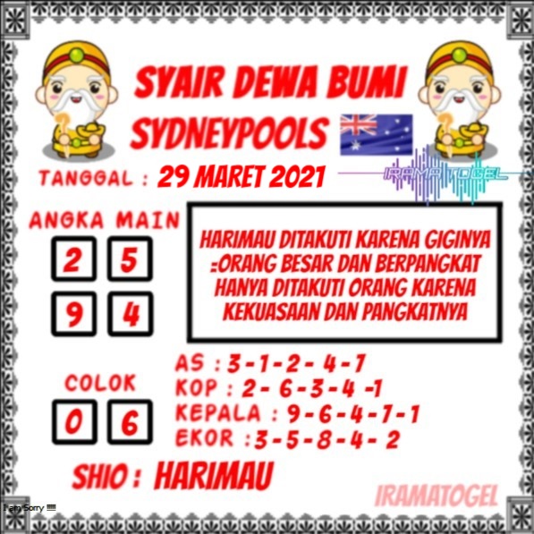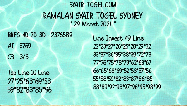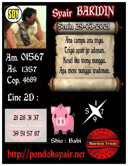 Syair Sdy Senin 29 Maret 2021