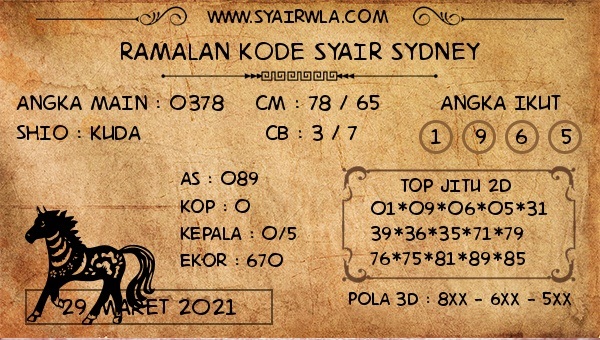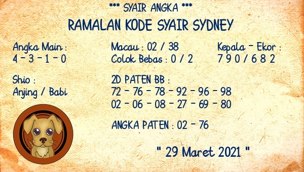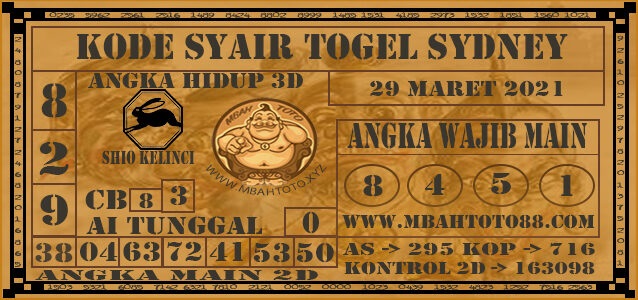 Kode Syair Sdy Senin 29 Maret 2021, meliputi forum syair sydney , paito warna sdy serta prediksi togel sidney dan di lengkapi juga dengan data pengeluaran sdy 2021 .