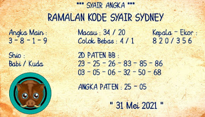 Kode Syair Sdy Senin 31 Mei 2021, meliputi forum syair sydney , Bocoran sdy serta prediksi togel sidney dan di lengkapi juga dengan data pengeluaran sdy 2021 .