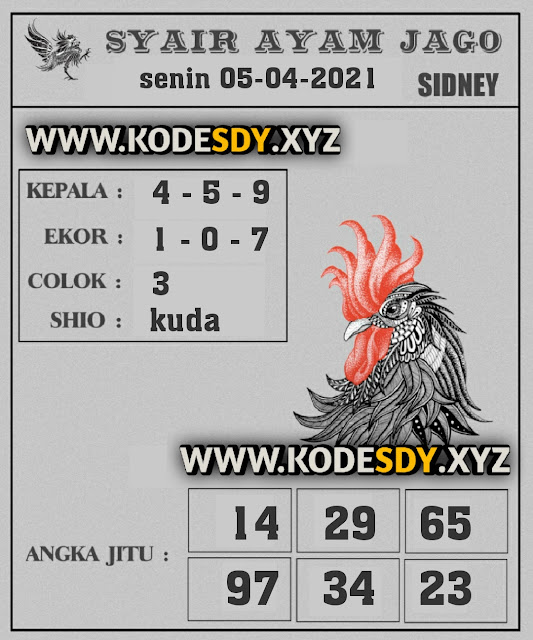 Kode Syair Sdy Senin 5 April 2021 , meliputi forum syair sydney , paito warna sdy serta prediksi togel sidney dan di lengkapi juga dengan data pengeluaran sdy 2021 .