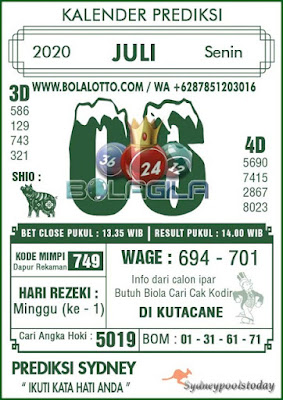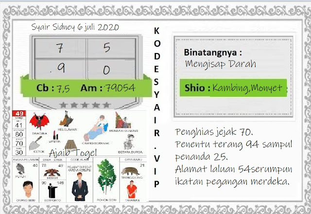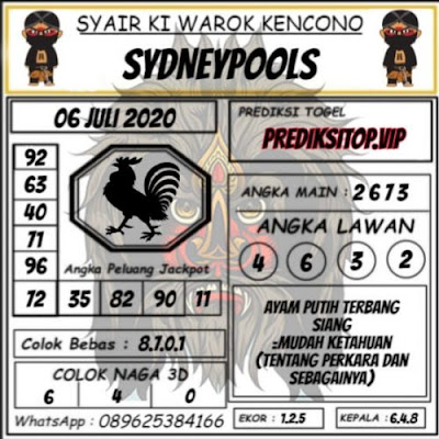 Kode Syair Sdy Senin 6 Juli 2020 meliputi forum syair sydney , paito warna sdy serta prediksi togel sidney dan di lengkapi juga dengan data pengeluaran sdy 2020 .