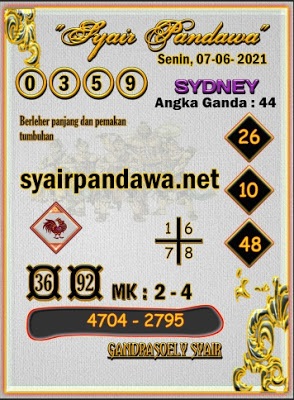 Syair Sdy Senin 7 Juni 2021