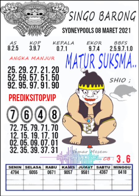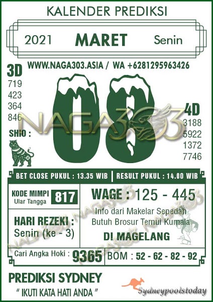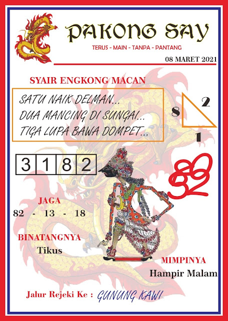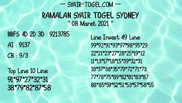 Syair Sdy Senin 8 Maret 2021