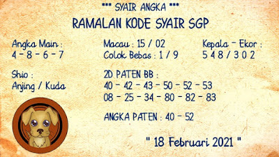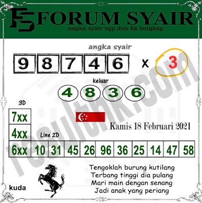 Forum Syair Sgp Kamis 18 Februari 2021 hari ini, kode syair sgp, code syair sgp paling cepat dan terlengkap di website ini , juga ada prediksi sgp serta pengeluaran togel sgp.