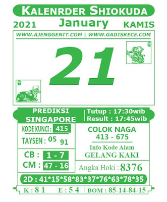 Prediksi togel Sgp hari ini 21 Januari 2021
