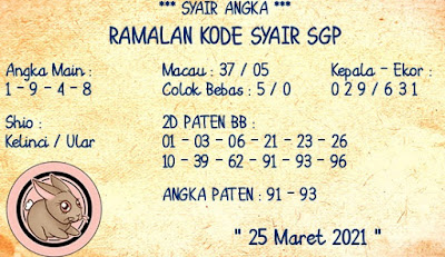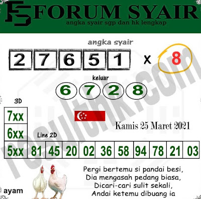 Forum Syair Sgp Kamis 25 Maret 2021 hari ini, kode syair sgp, code syair sgp paling cepat dan terlengkap di website ini , juga ada prediksi sgp serta pengeluaran togel sgp.