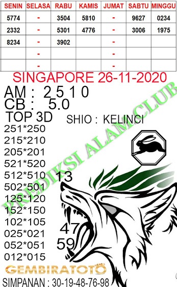 Kode Syair Sgp Kamis 26 November 2020