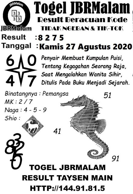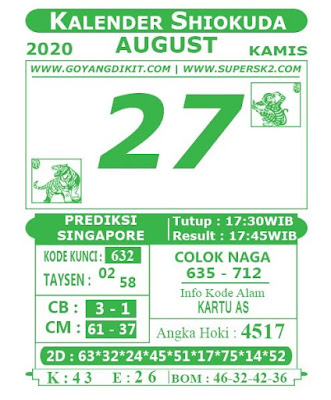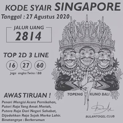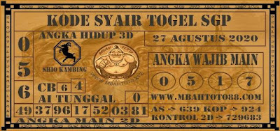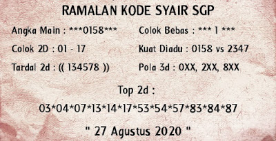 Kode Syair Sgp Kamis 27 Agustus 2020