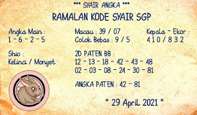 Kode Syair Sgp Kamis 29 April 2021