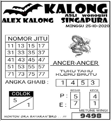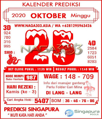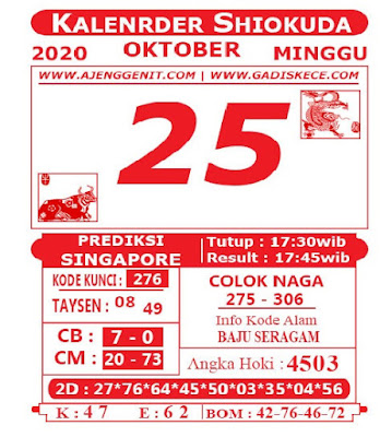 Prediksi togel Sgp hari ini 25 Oktober 2020