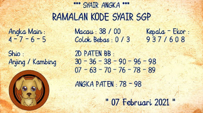 Forum Syair Sgp Minggu 7 Februari 2021 hari ini, kode syair sgp, code syair sgp paling cepat dan terlengkap di website ini , juga ada prediksi sgp serta pengeluaran togel sgp.