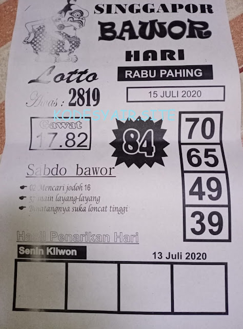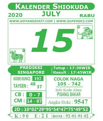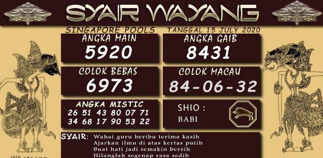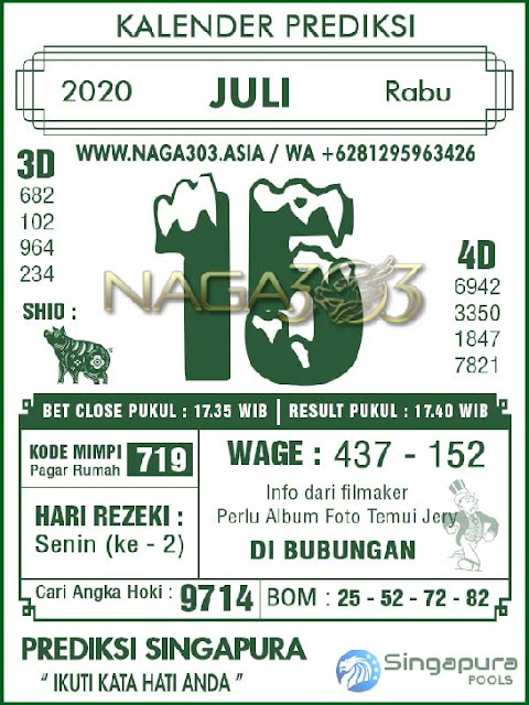 Prediksi togel Sgp hari ini 15 Juli 2020