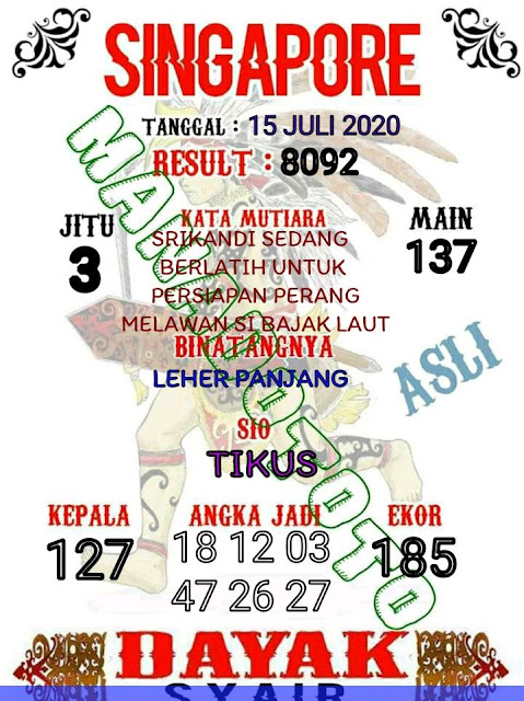 Kode Syair Sgp Rabu 15 Juli 2020 meliputi forum syair singapore, paito sgp serta prediksi togel singapura dan di lengkapi juga dengan data pengeluaran sgp 2020 .