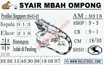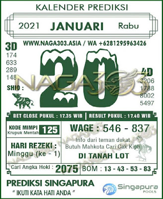 Prediksi togel Sgp hari ini 20 Januari 2021