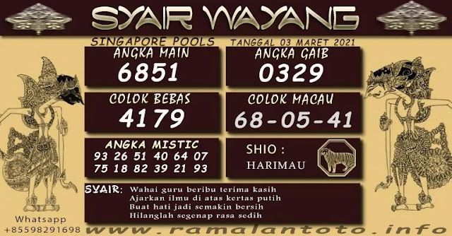Forum Syair Sgp Rabu 3 Maret 2021 hari ini, kode syair sgp, code syair sgp paling cepat dan terlengkap di website ini , juga ada prediksi sgp serta pengeluaran togel sgp.