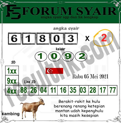 Forum Syair Sgp Rabu 5 Mei 2021 hari ini, kode syair sgpcode syair sgp paling cepat dan terlengkap di website ini , juga ada prediksi sgp serta pengeluaran togel sgp.