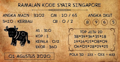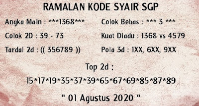 Kode Syair Sgp Sabtu 1 Agustus 2020
