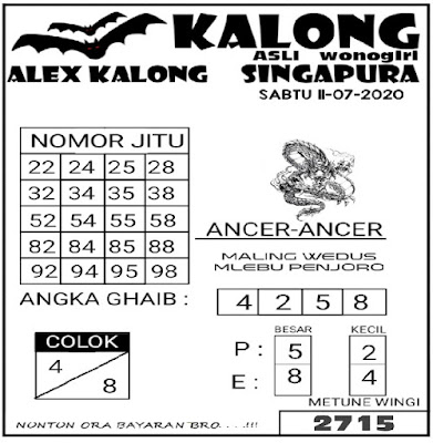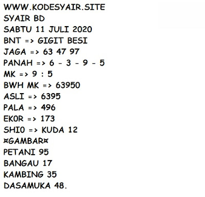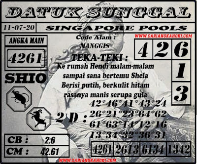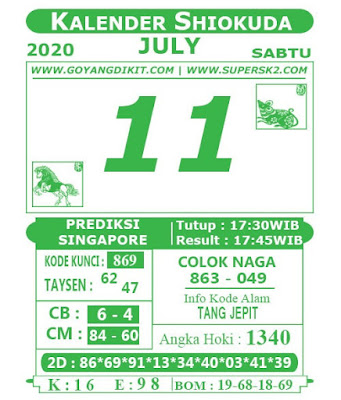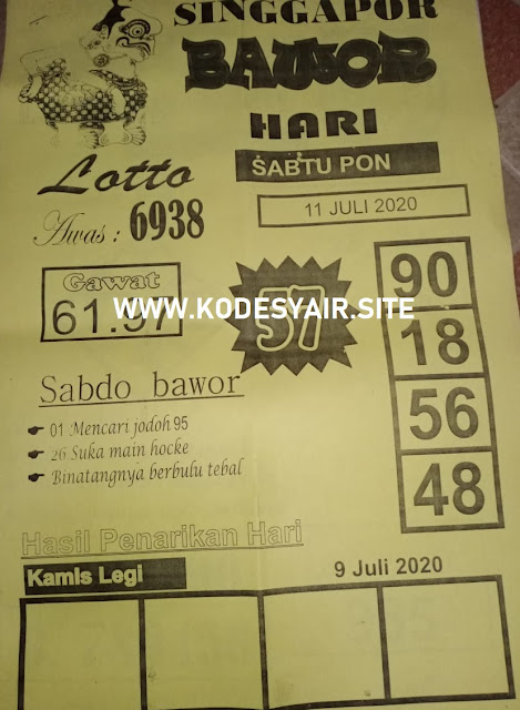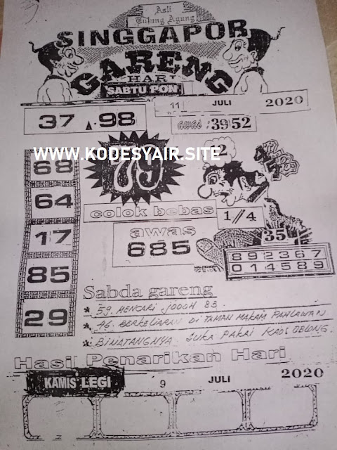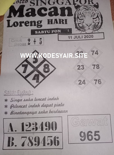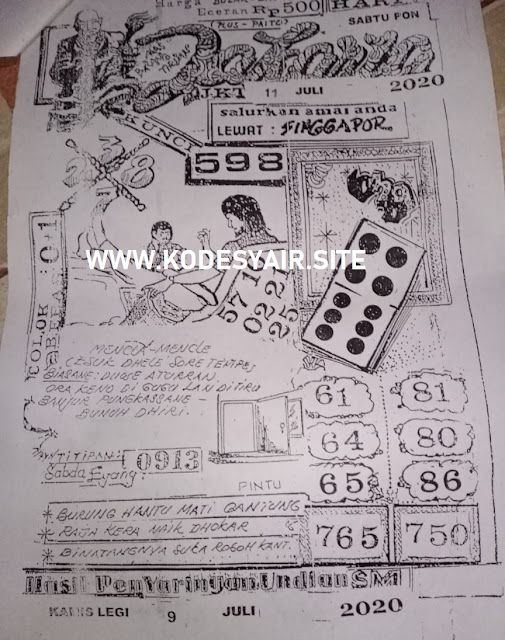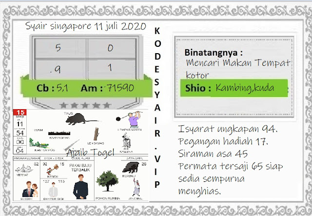 Kode Syair Sgp Sabtu 11 Juli 2020
