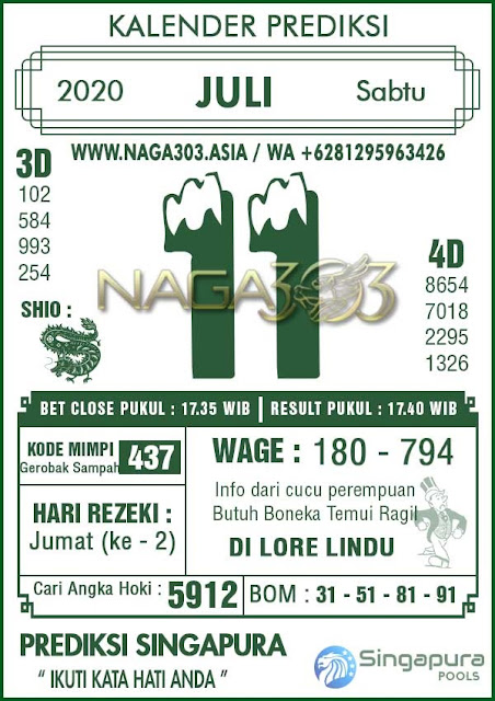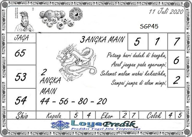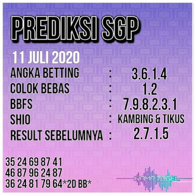 Prediksi togel Sgp hari ini 11 Juli 2020