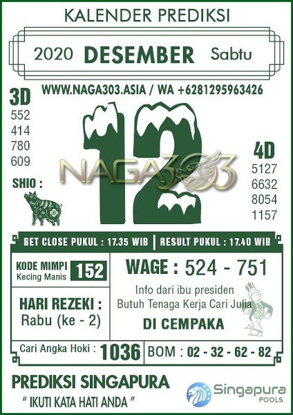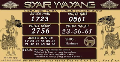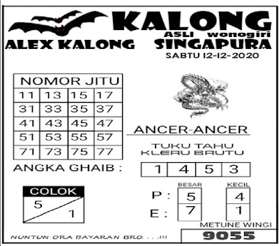 Kode Syair Sgp Sabtu 12 Desember 2020