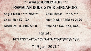 Kode Syair Sgp Sabtu 19 Juni 2021