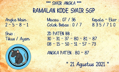 Kode Syair Sgp Sabtu 21 Agustus 2021