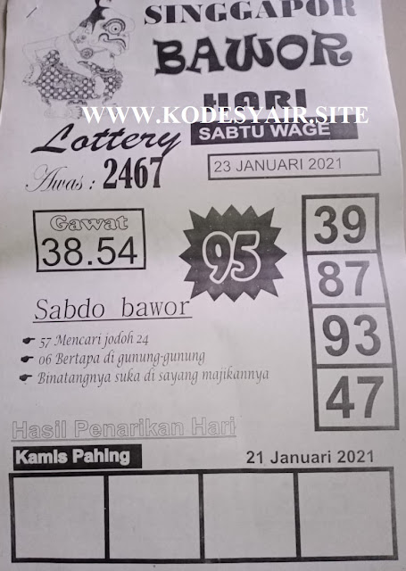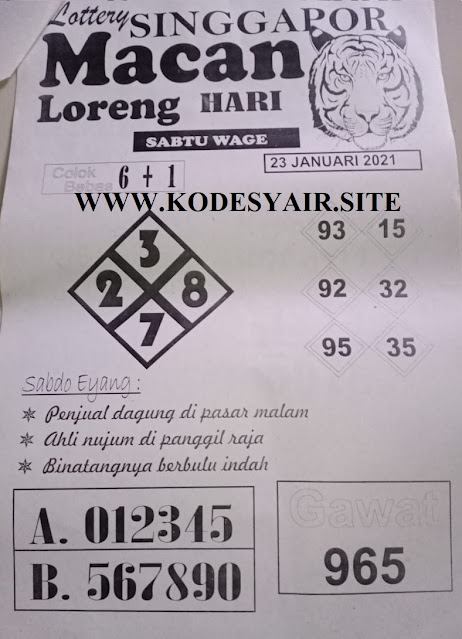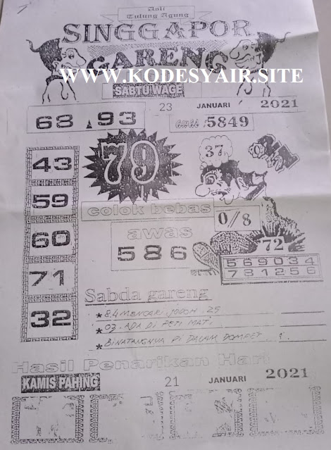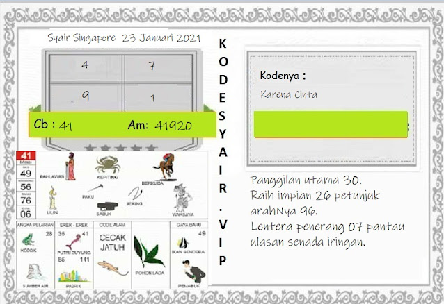 Kode Syair Sgp Sabtu 23 Januari 2021