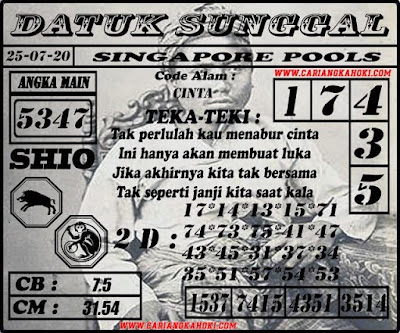 Kode Syair Sgp Sabtu 25 Juli 2020