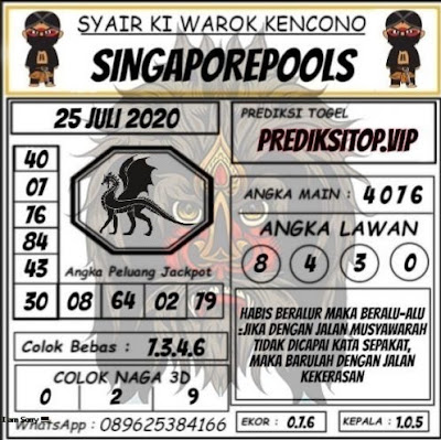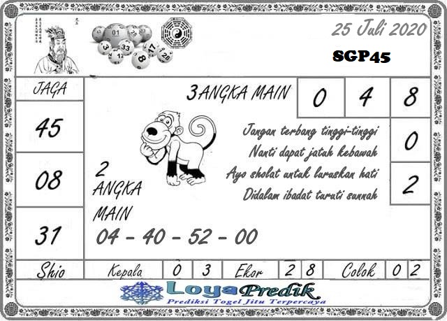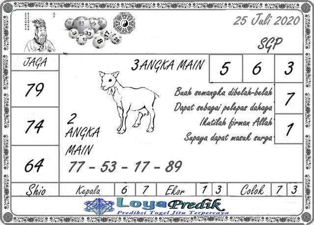 Prediksi togel Sgp hari ini 25 Juli 2020