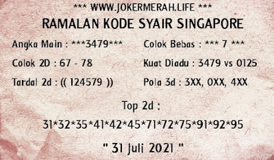 Kode Syair Sgp Sabtu 31 Juli 2021