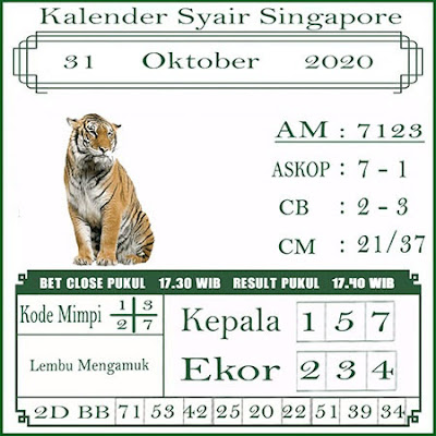 Kode Syair Sgp Sabtu 31 Oktober 2020