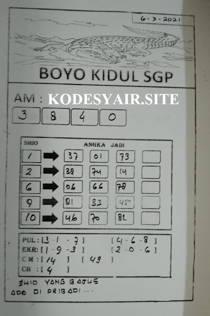 Kode Syair Sgp Sabtu 6 Maret 2021