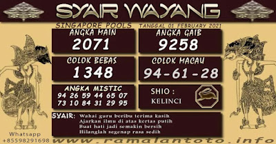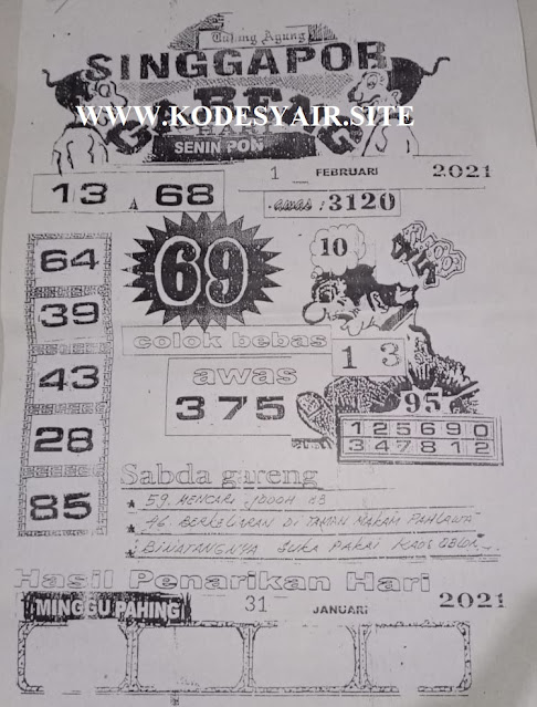 Forum Syair Sgp Senin 1 Februari 2021 hari ini, kode syair sgp, code syair sgp paling cepat dan terlengkap di website ini , juga ada prediksi sgp serta pengeluaran togel sgp.