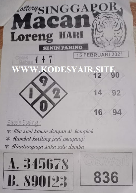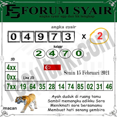 Forum Syair Sgp Senin 15 Februari 2021 hari ini, kode syair sgp, code syair sgp paling cepat dan terlengkap di website ini , juga ada prediksi sgp serta pengeluaran togel sgp.