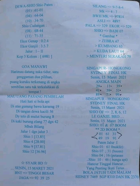 Forum Syair Sgp Senin 15 Maret 2021 hari ini, kode syair sgp, code syair sgp paling cepat dan terlengkap di website ini , juga ada prediksi sgp serta pengeluaran togel sgp.