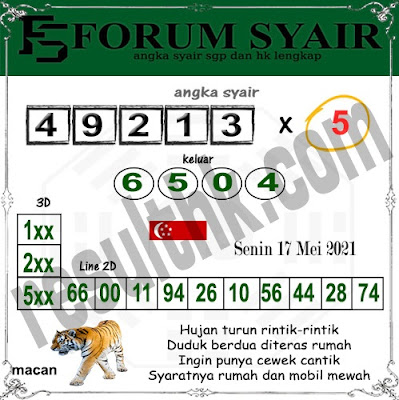 Forum Syair Sgp Senin 17 Mei 2021 hari ini, kode syair sgpcode syair sgp paling cepat dan terlengkap di website ini , juga ada prediksi sgp serta pengeluaran togel sgp.
