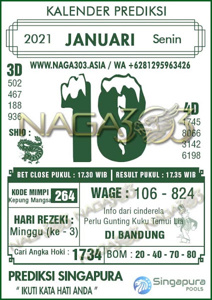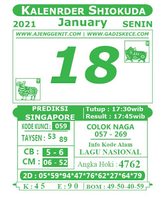 Prediksi togel Sgp hari ini 18 Januari 2021