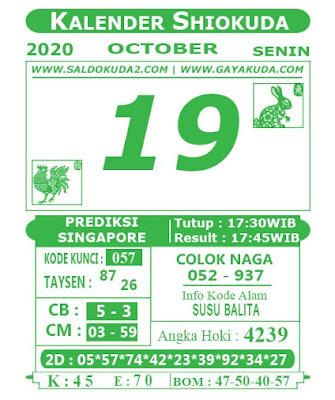 Prediksi togel Sgp hari ini 19 Oktober 2020