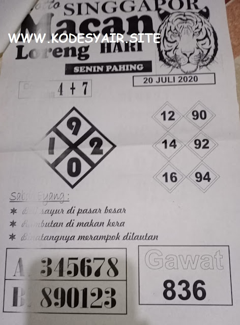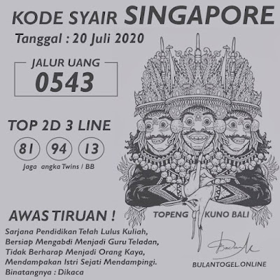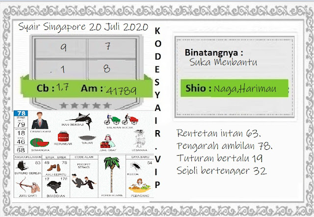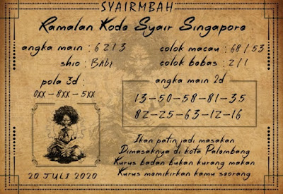 Kode Syair Sgp Senin 20 Juli 2020 meliputi forum syair singapore, paito sgp serta prediksi togel singapura dan di lengkapi juga dengan data pengeluaran sgp 2020 .