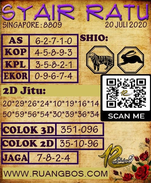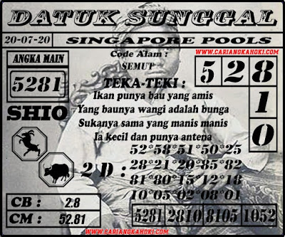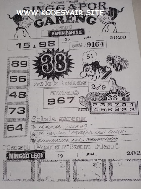 Prediksi togel Sgp hari ini 20 Juli 2020