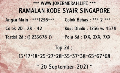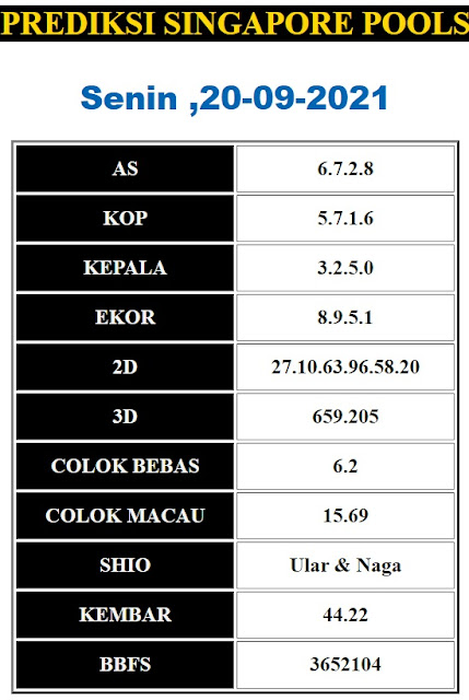 Kode Syair Sgp Senin 20 September 2021