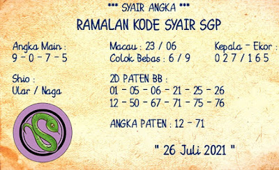 Forum Syair Sgp Senin 26 Juli 2021 hari ini, kode syair sgp, code syair sgp paling cepat dan terlengkap di website ini , juga ada prediksi sgp serta pengeluaran togel sgp.