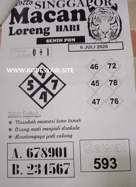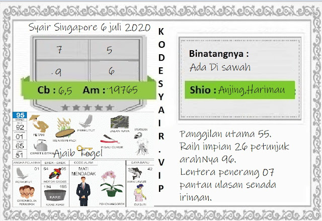 Kode Syair Sgp Senin 6 Juli 2020 meliputi forum syair singapore, paito sgp serta prediksi togel singapura dan di lengkapi juga dengan data pengeluaran sgp 2020 .